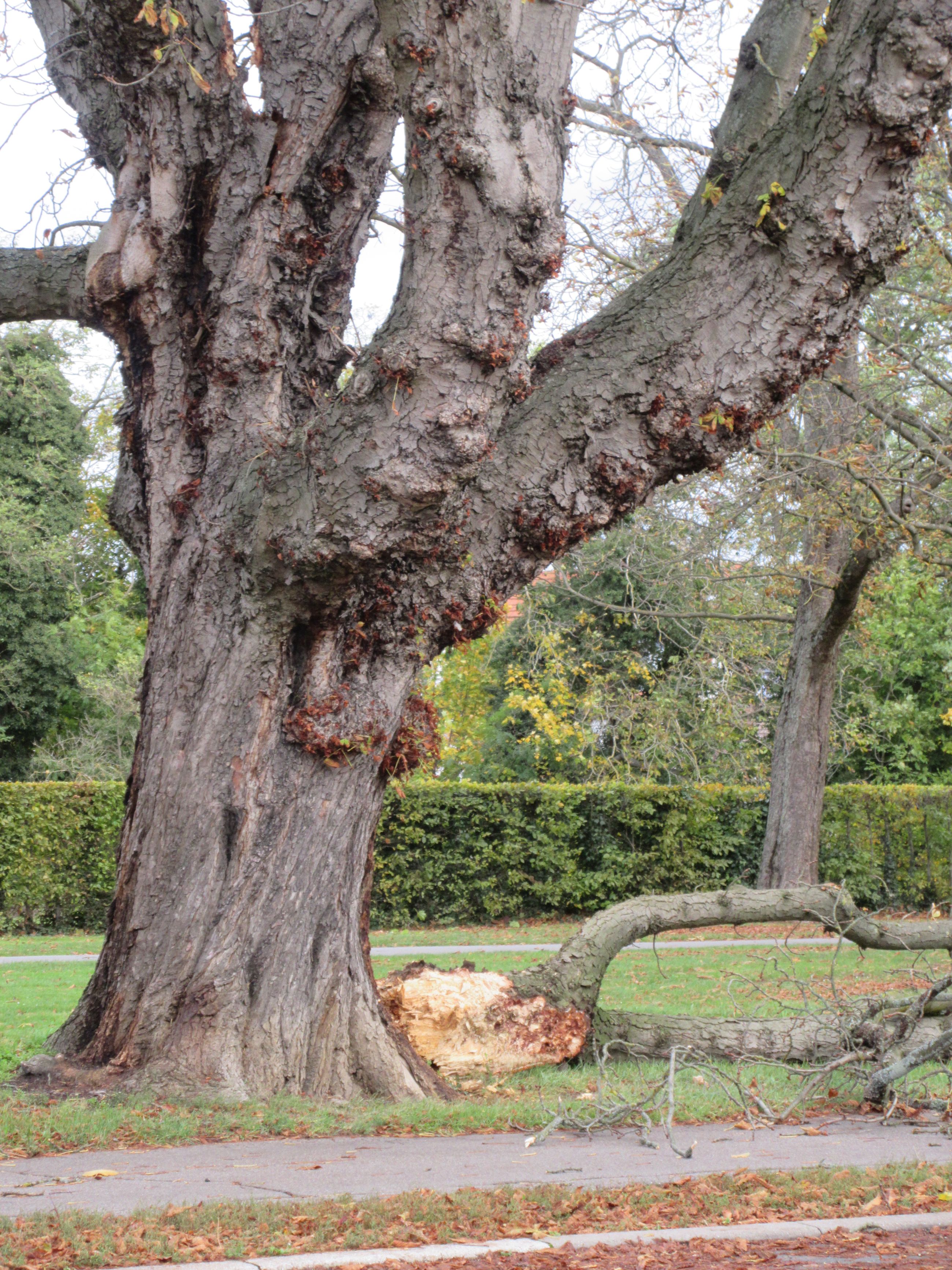 Das Phänomen des Grünastabwurfs betrifft auch gesunde Bäume: Besonders ausgeprägt ist die Gefahr in Phasen hoher Temperaturen und geringer Niederschläge: Reicht der Saftstrom im Bauminneren aufgrund von starker Verdunstung nicht mehr für alle Bereiche der Krone aus, kann es zum Abwurf großer Äste kommen – selbst bei Windstille. Der Klimawandel ist mittlerweile auch in den historischen Gärten des Landes angekommen: Die Gehölze sind infolge der vergangenen heißen Sommer bereits geschwächt. Auch in diesem Jahr hat der Sommer mit einer Hitzewelle begonnen und es ist zu erwarten, dass sich der Trend fortsetzt. Um die Astbruchgefahr zu minimieren, werden die Gärten ständig überwacht: Baumgutachter und -gutachterinnen überprüfen die Bäume und entfernen schadhafte Teile. Neben der Entnahme von Totholz müssen wiederholt auch Altbäume aus Sicherheitsgründen gefällt werden. Eine Sicherheitsgarantie kann dennoch nicht gegeben werden, da es für den Grünastabwurf selbst für Expertenaugen keine erkennbaren Vorzeichen gibt. Neben hohen Temperaturen und Dürre sorgen indirekte Folgen der Klimaerwärmung für zusätzliche Herausforderungen: Neue Schädlinge und Pilze breiten sich immer schneller aus und belasten sogar Baumarten, die bislang als robust galten.